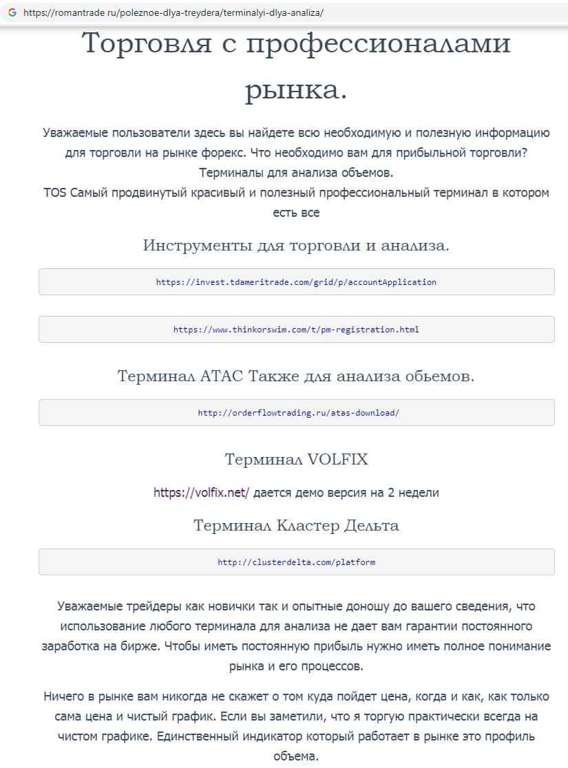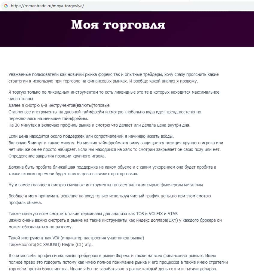 - Обзор официального интернет-портала псевдо-обучающей конторы RomanTrade Ru