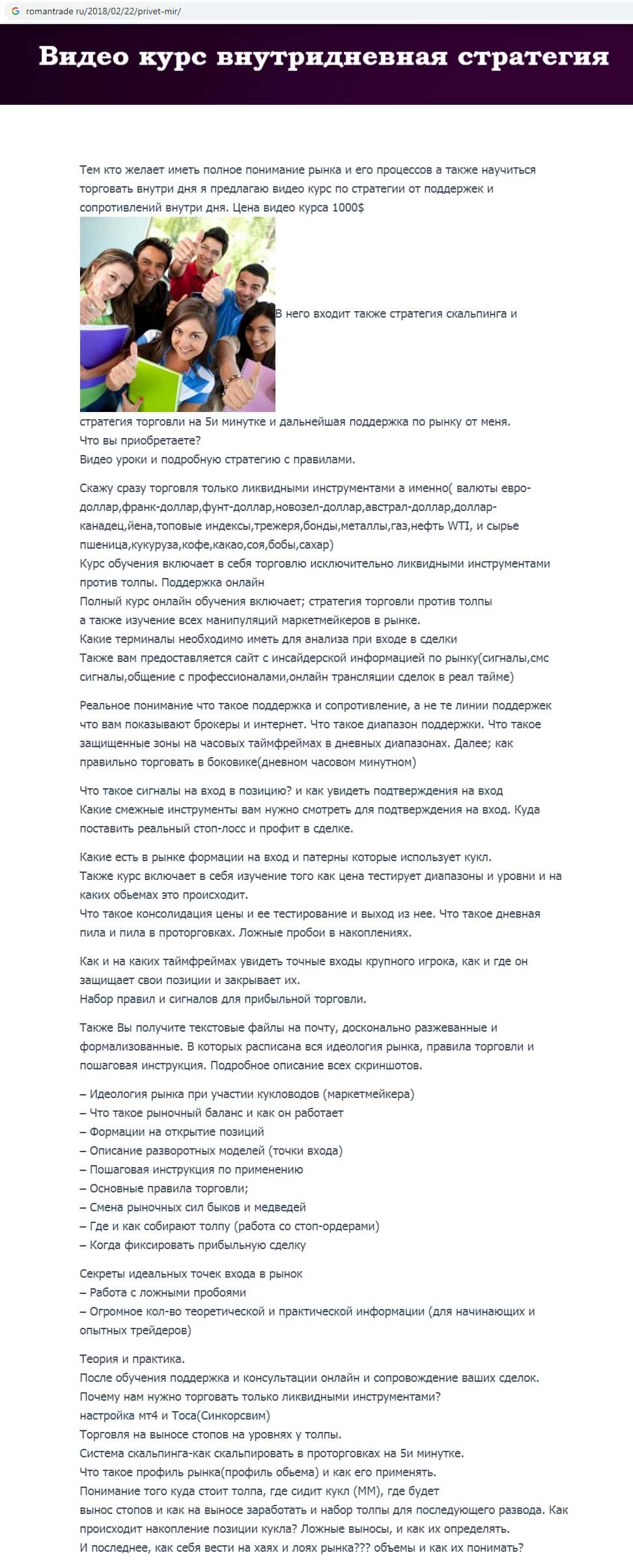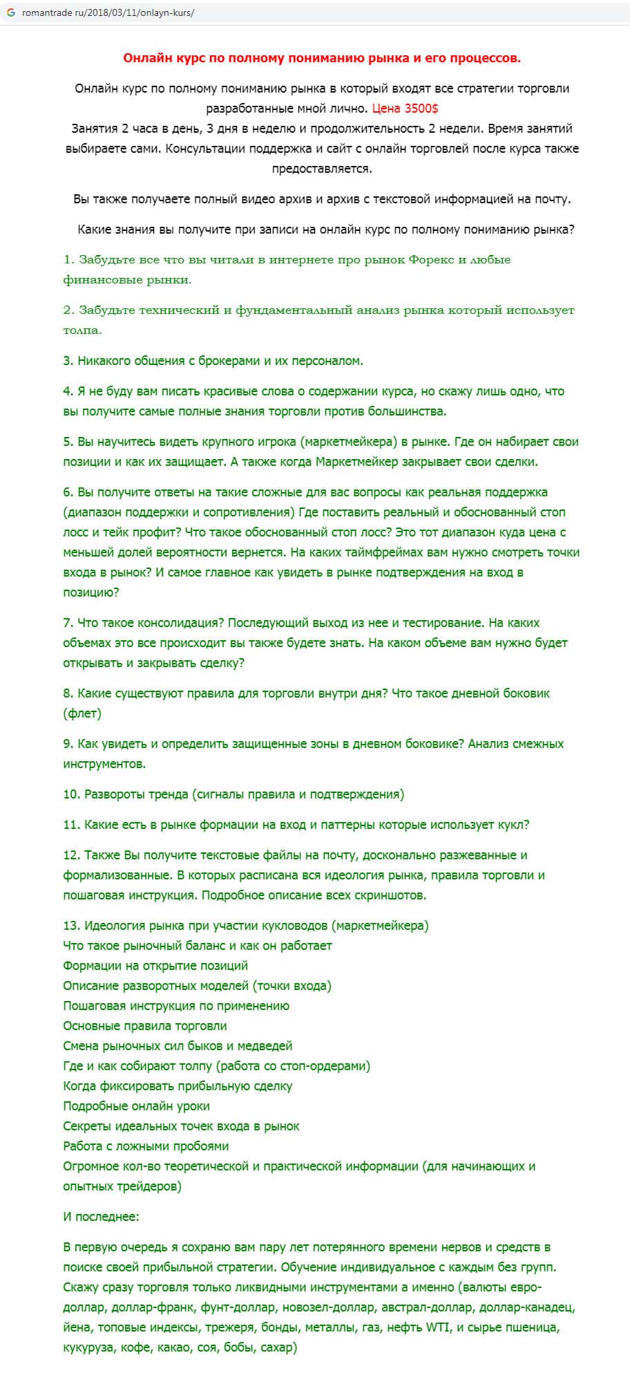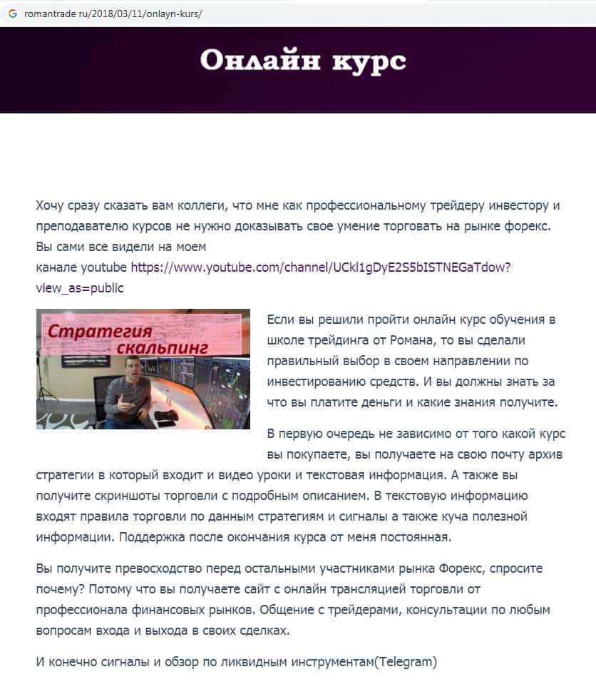 - Что рассказывают аферисты RomanTrade Ru о своих онлайн-курсах?