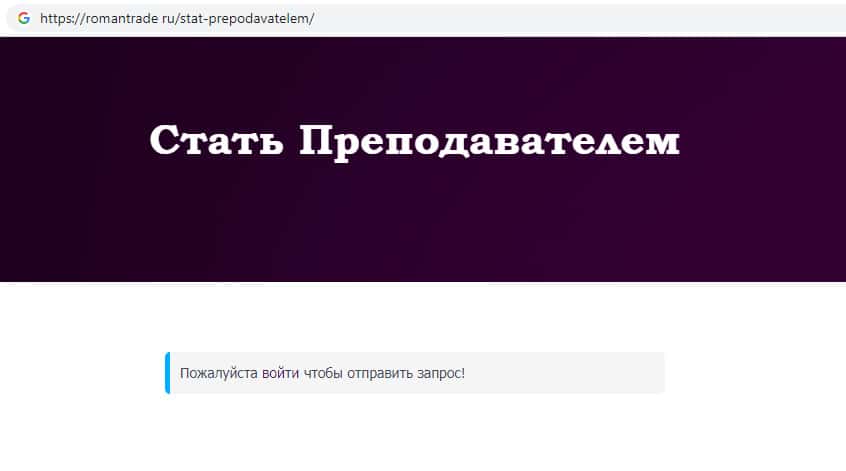 Мошенники RomanTrade Ru предлагают стать преподавателем на их дырявом сайте