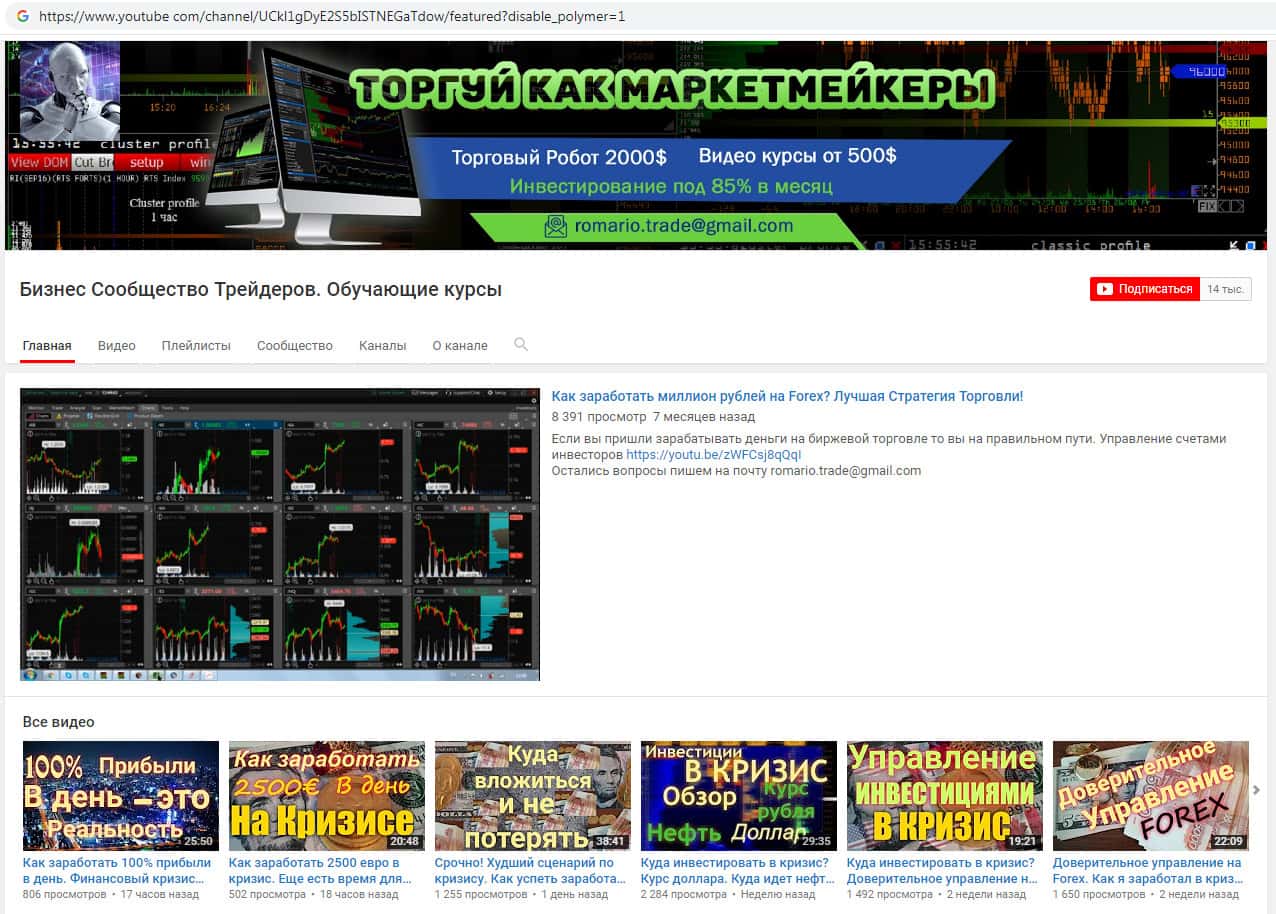 Жулики Роман Трейд считают свои видео на youtube com полезными