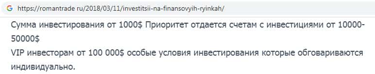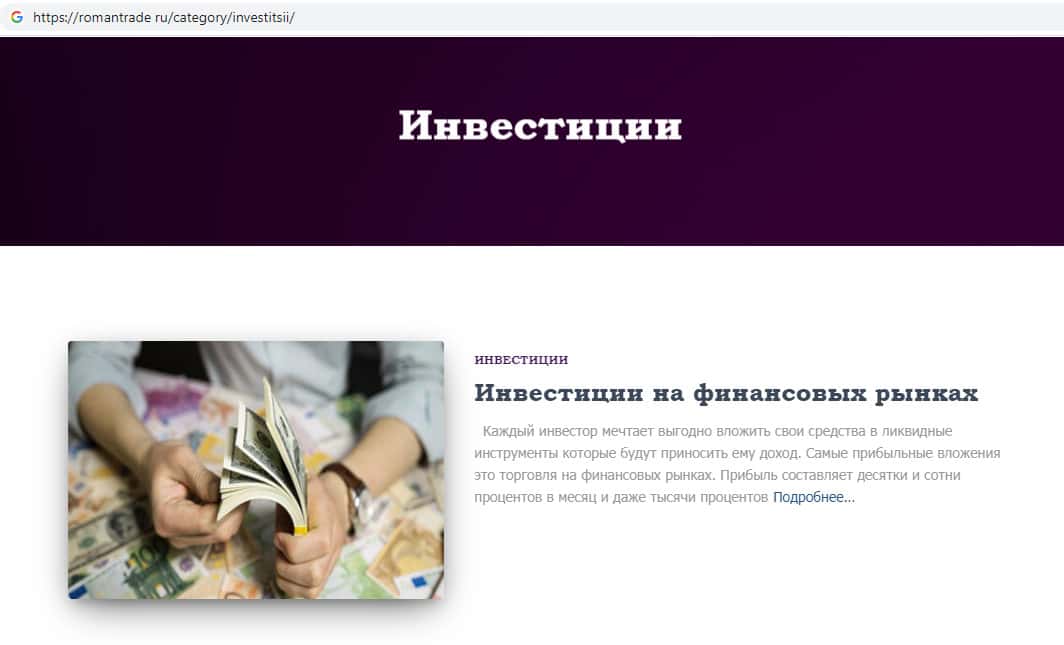 - Что пишут аферисты RomanTrade Ru об инвестициях на финансовых рынках?