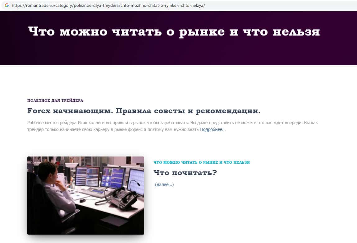 Что рекомендуют читать аферисты RomanTrade Ru о рынке Форекс?