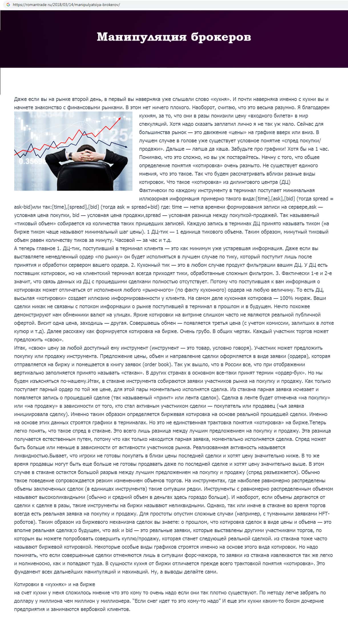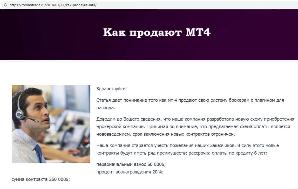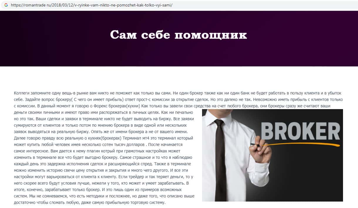 Аферисты Роман Трейд описывают реальное положение дел, рассказывая о форекс кухнях. Информация, которую мошенники опубликовали на своем фейковом сайте, в частности напрямую относится к тем брокерским конторам, где RomanTrade Ru предлагают торговать, размещая ссылки на их дырявые сайты.
