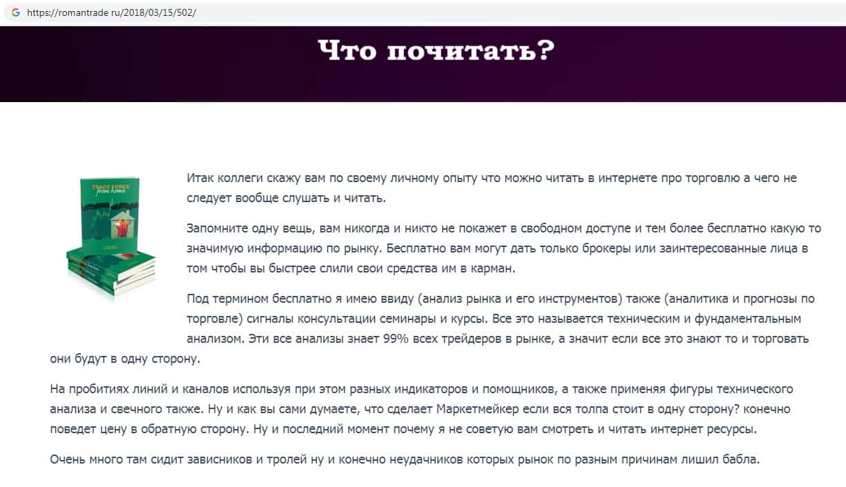 - Что рекомендуют читать аферисты RomanTrade Ru о рынке Форекс?