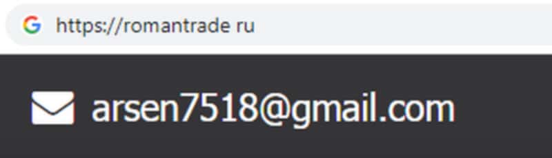 - адрес электронной почты жульнической конторы RomanTrade Ru: arsen7518@gmail com