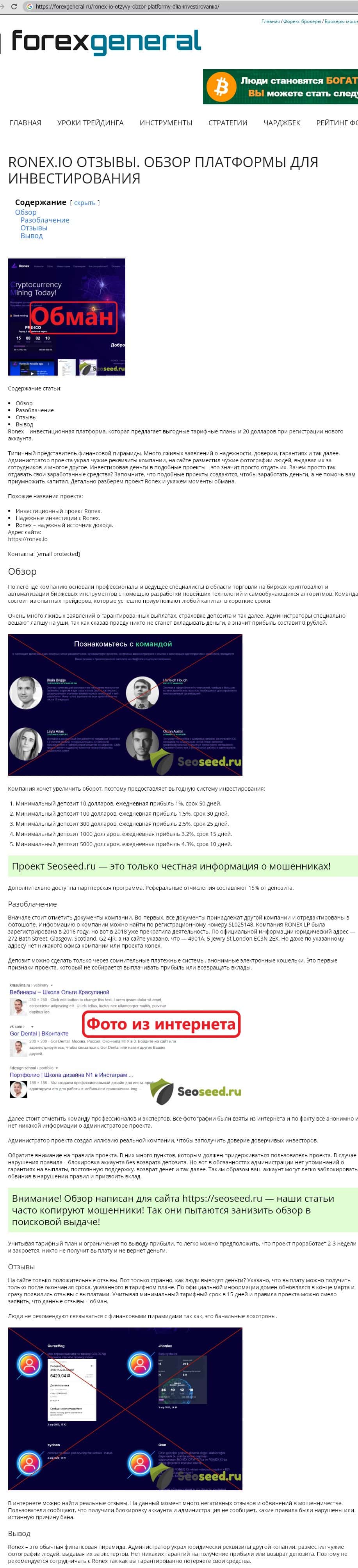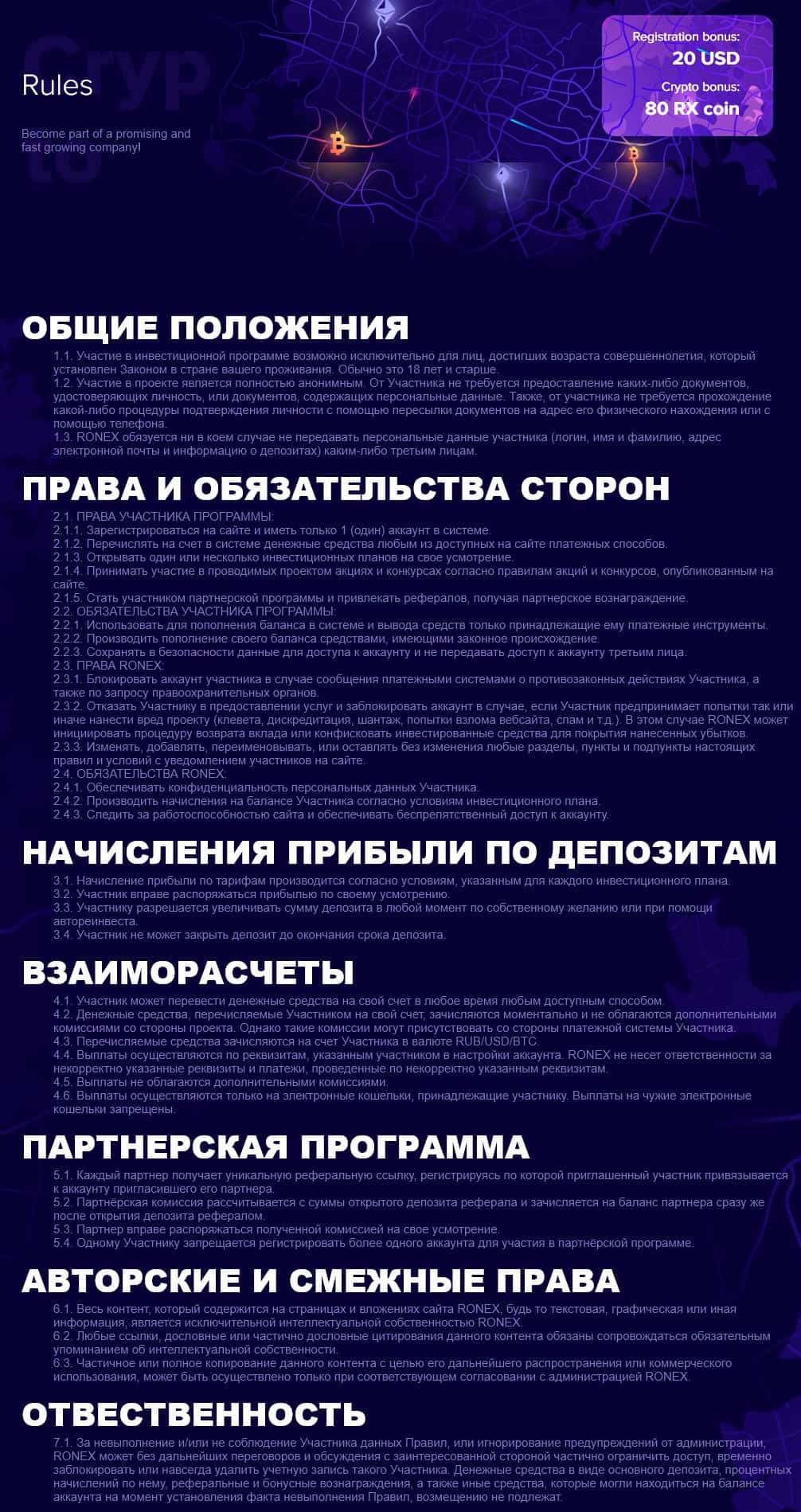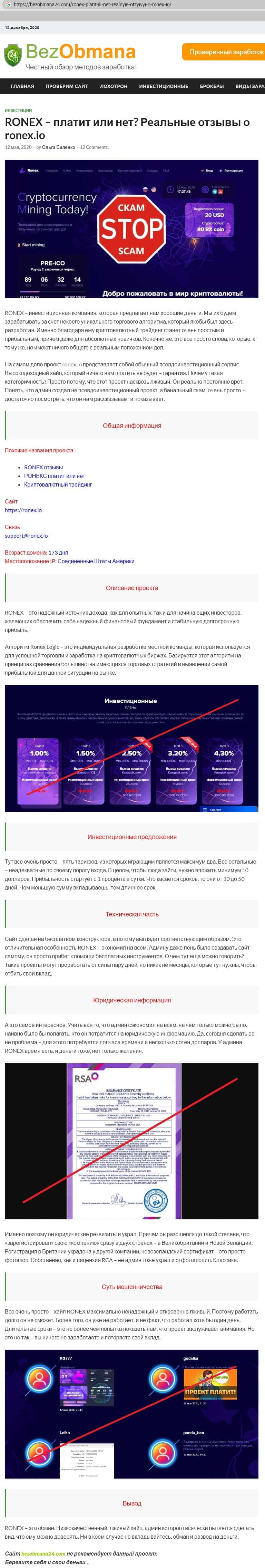 - Информация о мошенническом криптовалютном проекте Ронекс