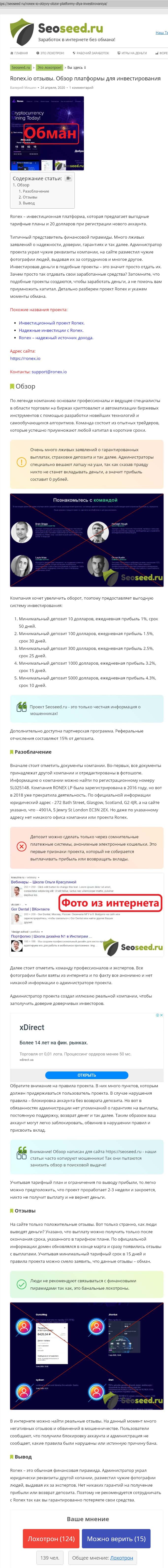 Обзоры аферы Ронекс на различных ресурсах в сети Интернет