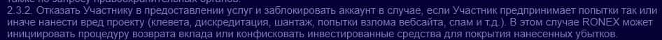 Нюансы клиентского соглашения криптоинвестиционной площадки Ронекс, предлагаемого инвесторам