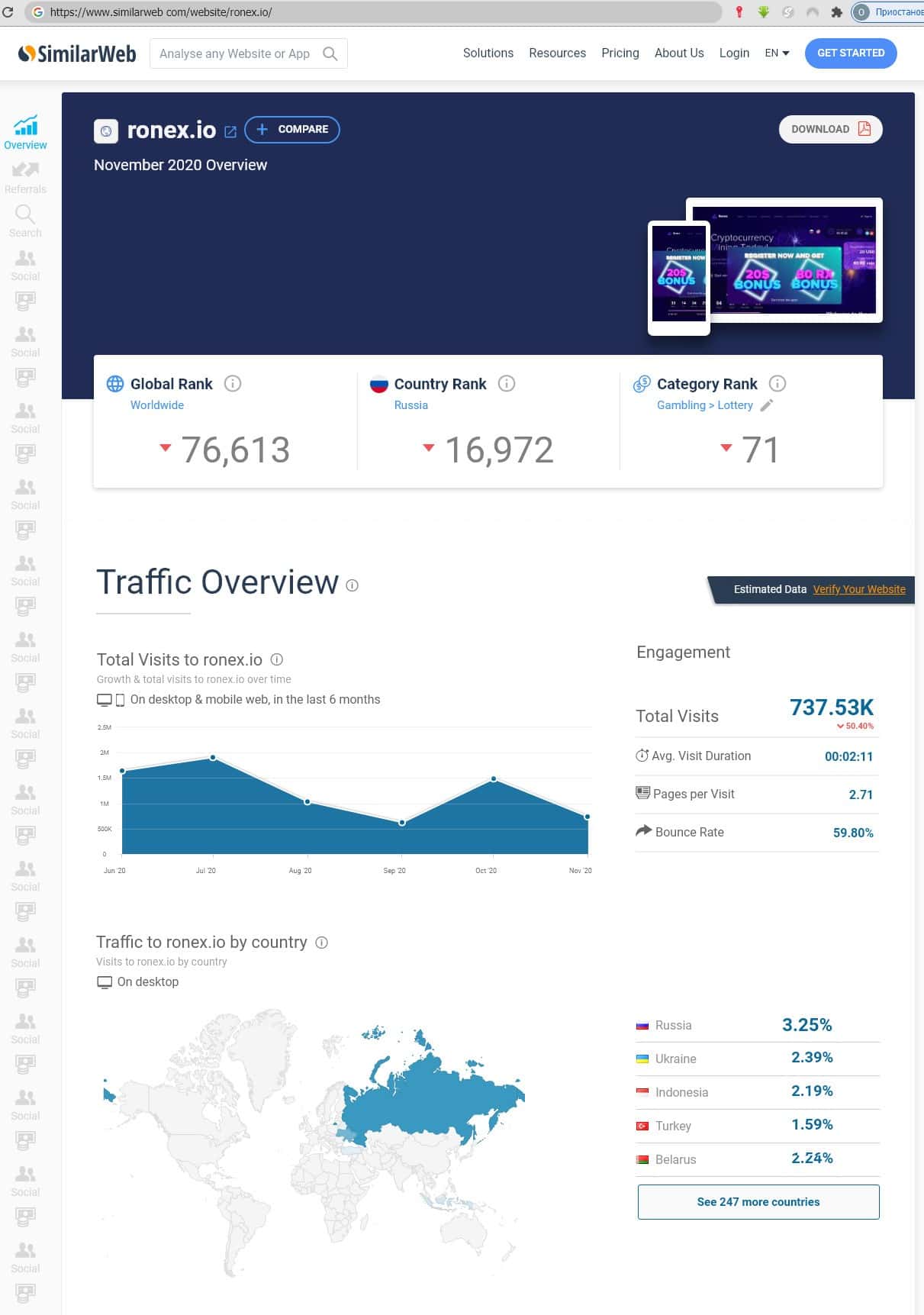 По сведениям портала Similarweb основными "потребителями" обмана криптовалютного майнинга в исполнении Ронекс являются жители стран СНГ, немного Турция и Индонезия.