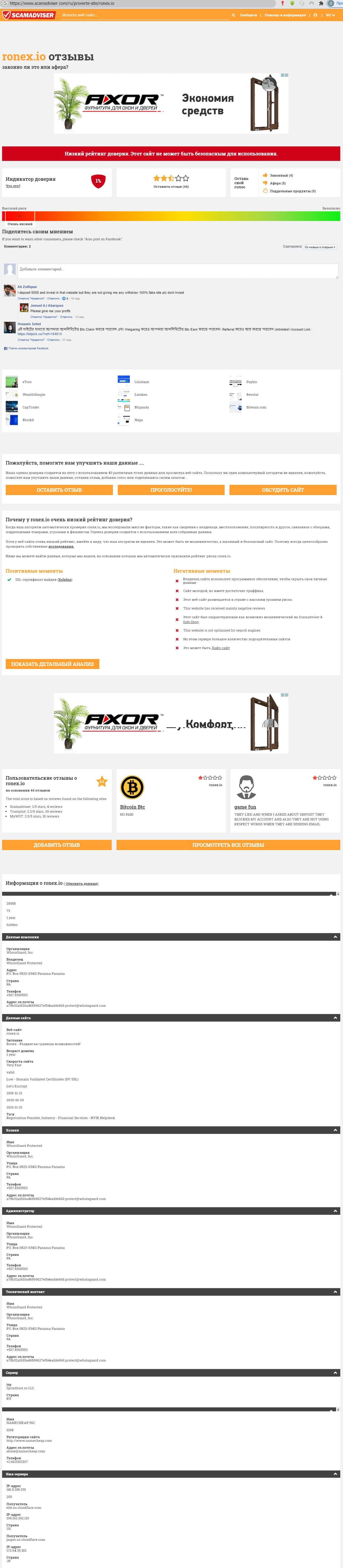 Портал scamadviser, проанализировав доступную информацию о портале Ронекс, не рекомендует доверять этому жульническому ресурсу на основании негативных характеристик.