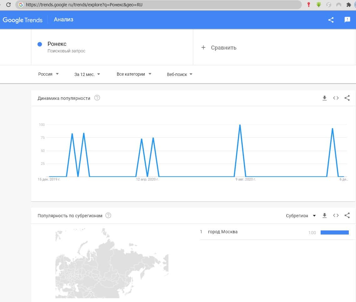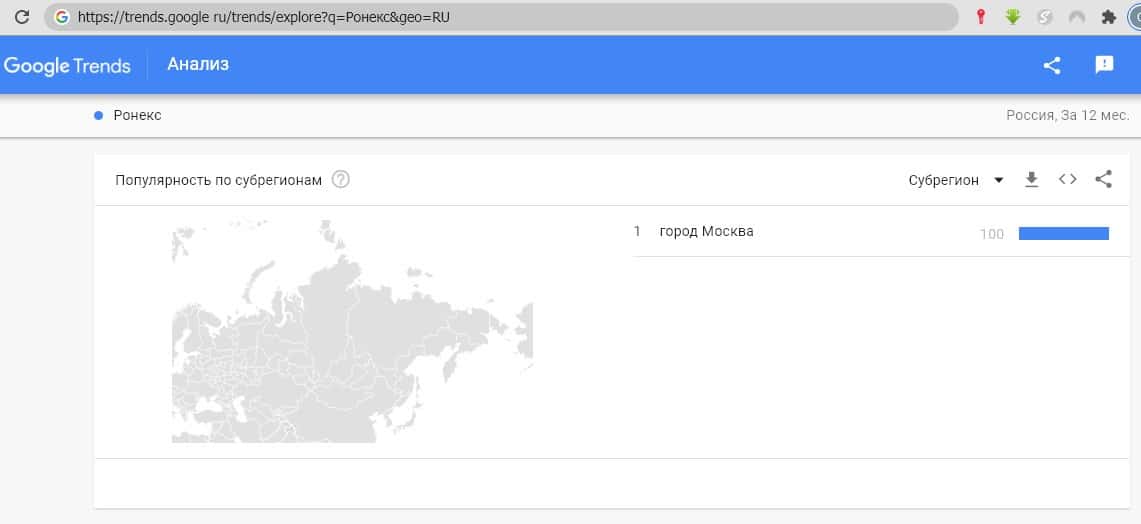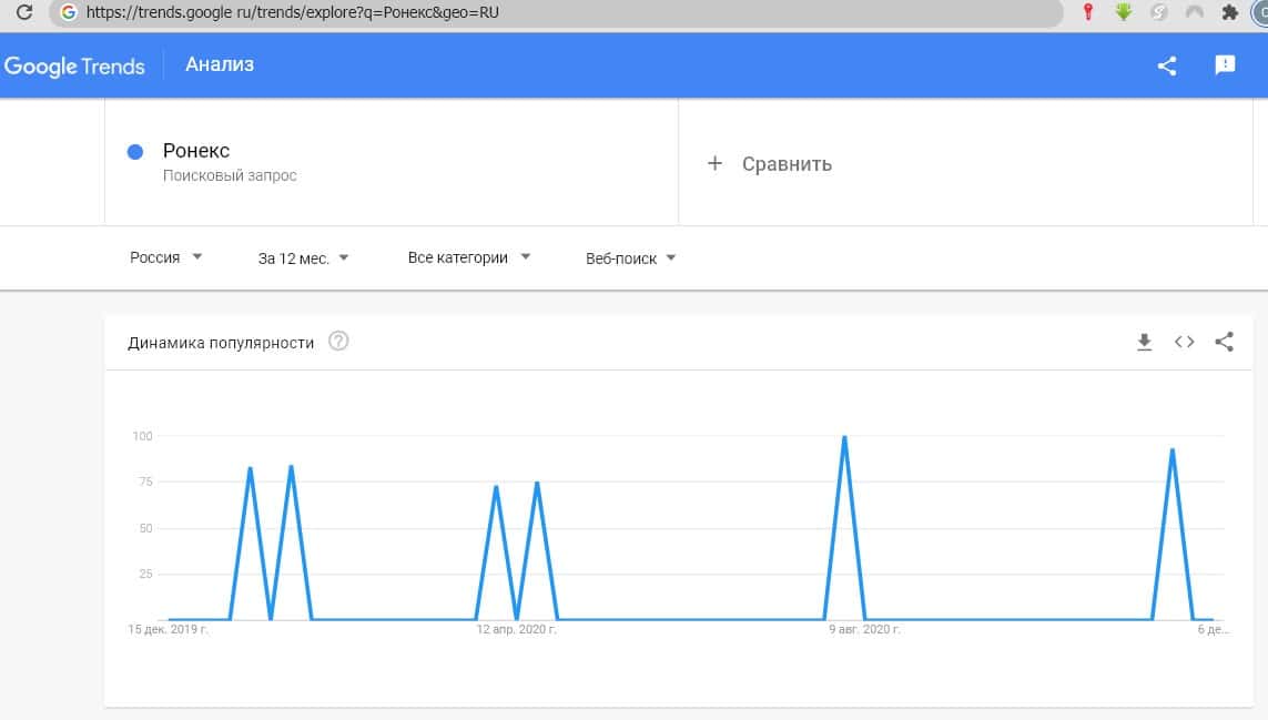 - Анализ количества поисковых запросов по бренду Ронекс в google trends