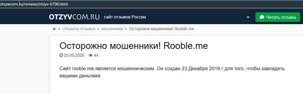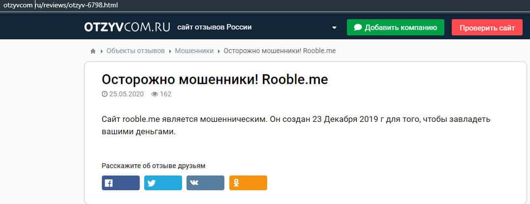 Еще один человек высказался в своем отзыве, что интернет-проект Rooble Me - это обычный лохотрон по сбору денег с наивной клиентуры.