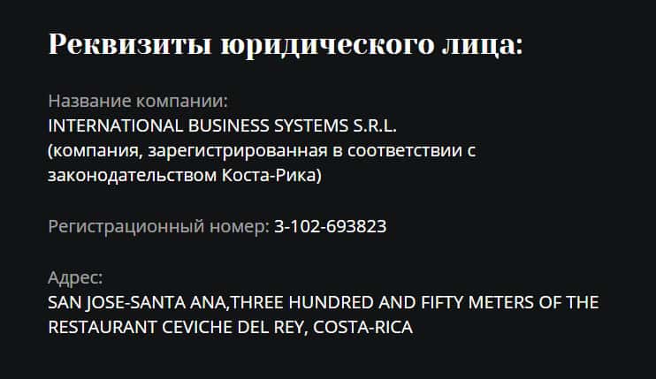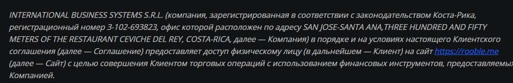 Из договора конторы Рообле Ми следует информация, что данным брендом управляет компания INTERNATIONAL BUSINESS SYSTEMS S.R.L., зарегистрированная в Коста-Рике.