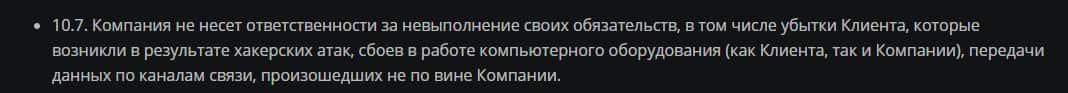 Лохотронская организация Rooble Me не несет ответственности за убытки клиента еще в одном моменте - когда счет могут взломать потусторонние заинтересованные лица.