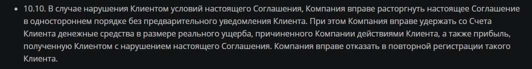В случае, если жулики посчитают, что клиент нарушил правила данного соглашения, то Rooble Me может в одностороннем порядке расторгнуть договор.