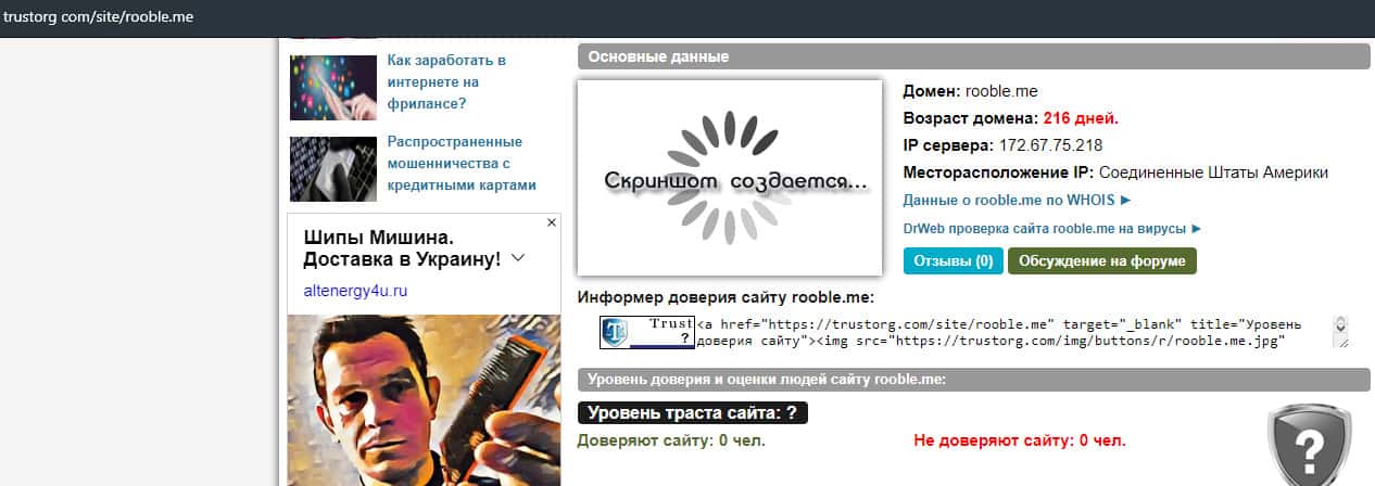 Сайт конторы rooble.me настолько непопулярен, что система scamadviser не смогла выдать никакую информацию о его деятельности.