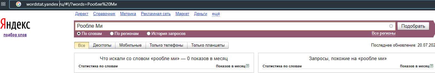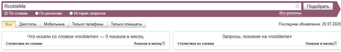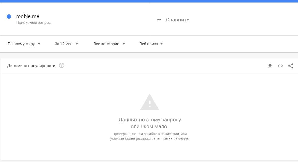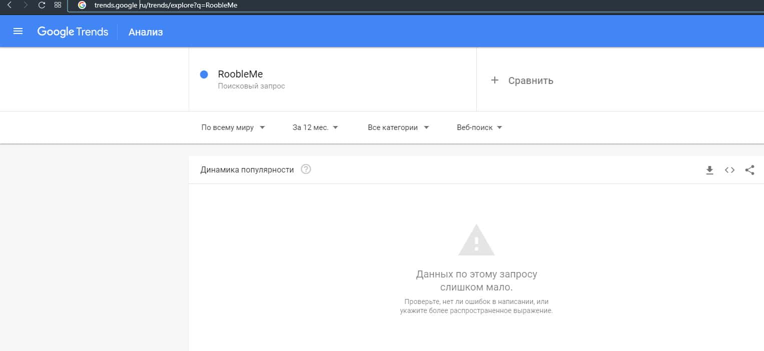 А вот бренду лохотрона "Rooble Me" повезло немного больше, так как запрос по нему не был ни разу не совершен, что также не прибавляет им популярности в сети интернет.
