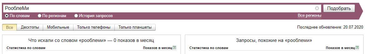 Другая версия русскоязычного бренда "РооблеМи" по запросам также не увенчалась успехом, так как шарлатаны вовсе не популярны в интернет-кругах.