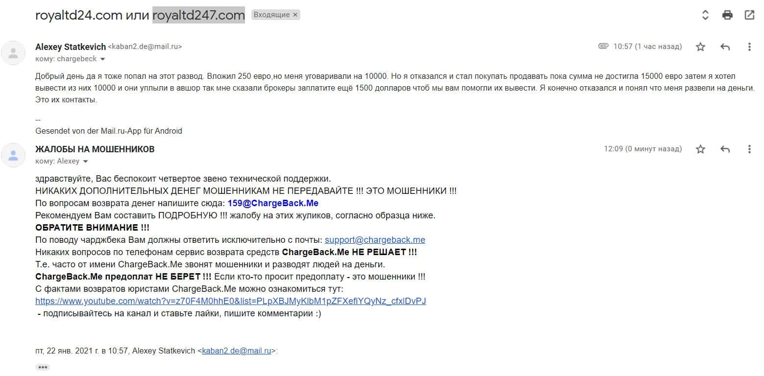 - Автор вышеизложенного материала о деятельности проходимцев RoyaLtd24