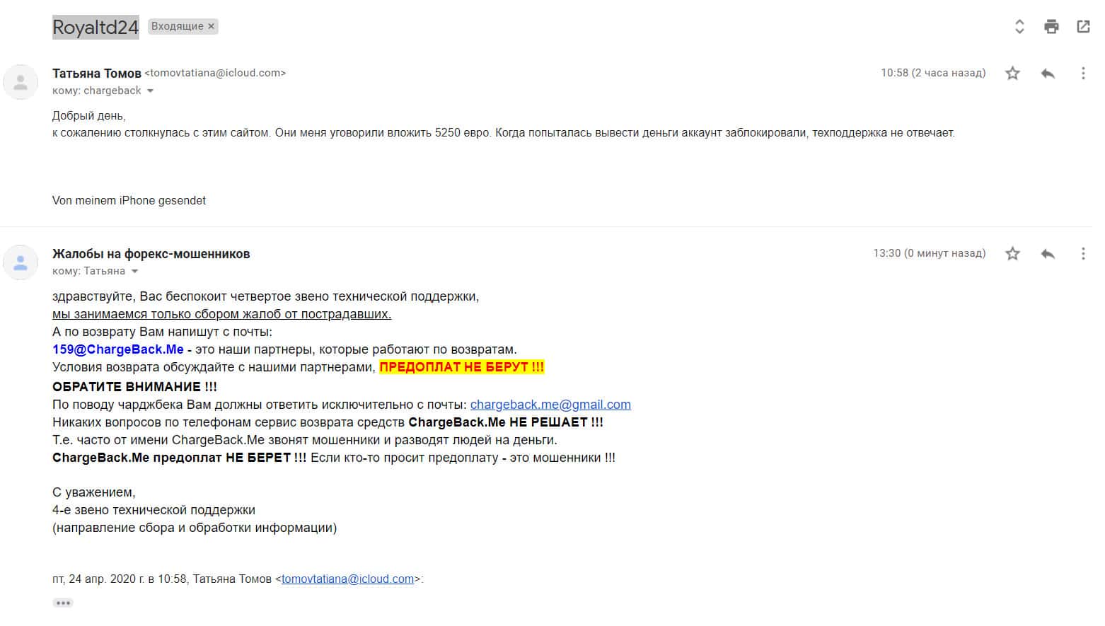 Жалоба на мошенников РояЛтд24 - клиента развели на 4 500 евро