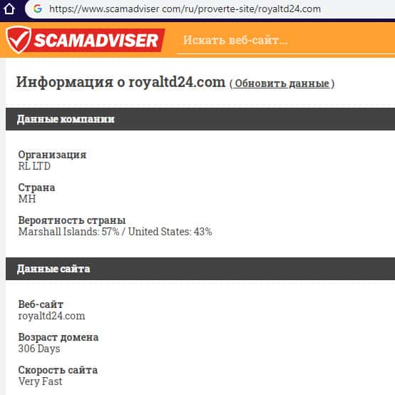 - Остатки информации о деятельности шулеров RoyaLtd24 на просторах сети интернет