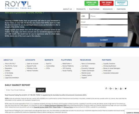 Под контакты шулера Royal Financial не сделали отдельный раздел, а ограничились лишь кратким их перечнем на главной странице сайта аферистов Роял Финанс. Самих контактов довольно малое количество, что говорит об желании шулеров оставаться анонимными. Контакты жуликов Royal Financial: