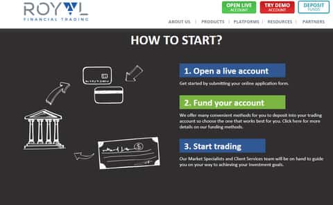 Для особо не понятливых аферисты Роял Финанс далее разместили раздел, в котором описываются шаги регистрации на платформе шулеров Royal Financial, которым жулики советуют следовать. На изображении, расположенном ниже, вы можете увидеть очередной раздел сайта лохотрона Роял Финанс.
