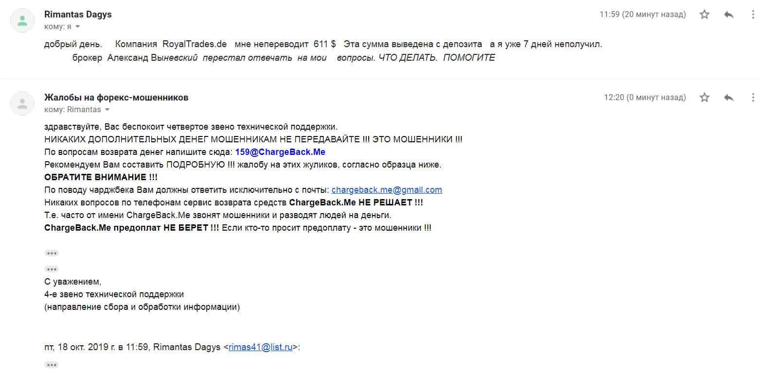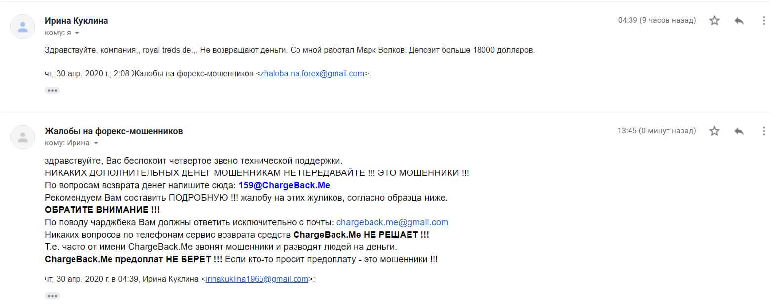 Мошенники Роял Трейд Де не отдают клиенту 18 000 $
