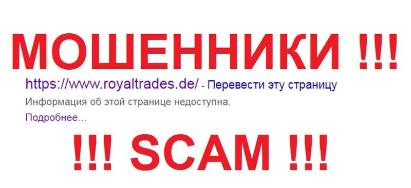 Торговля на сайте скам-брокера Роял Трейдс сопряжена высоким уровнем риска потери всех вложенных денежных средств на счет брокера. Так же хотим напомнить о том, что клиент сам несет ответственность за сохранность средств на своем торговом счете на сайте мошеннической организации RoyalTrades De.