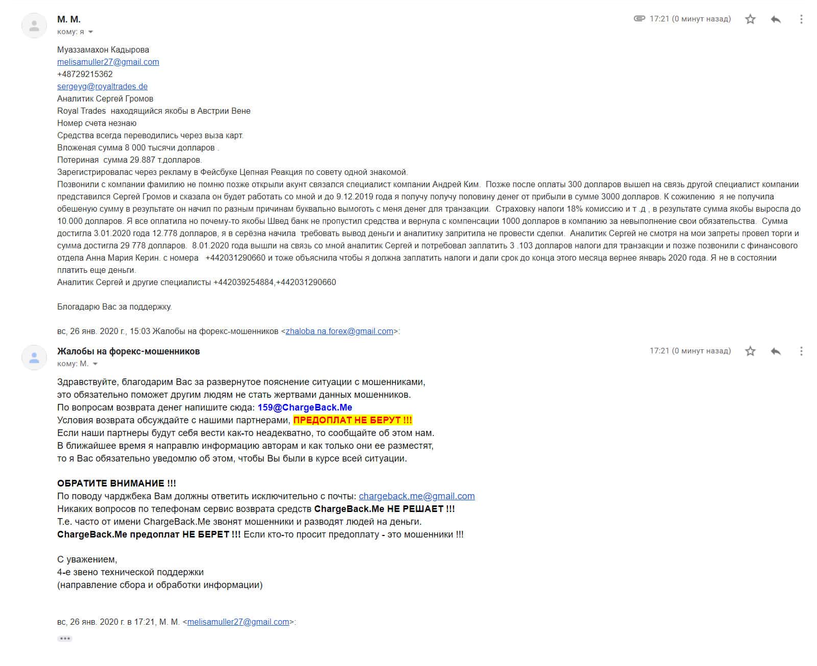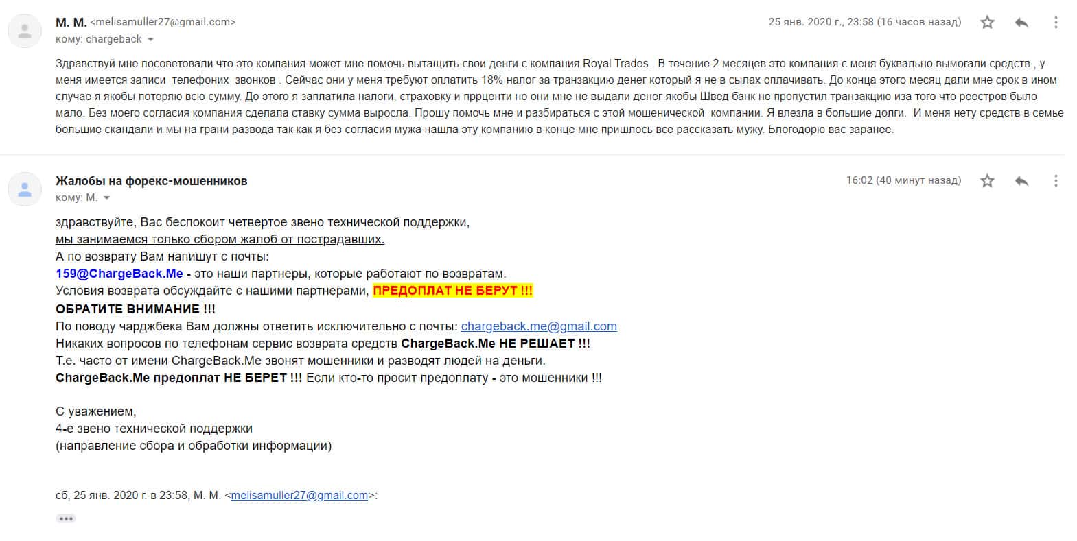 - Детальная жалоба на RoyalTrades - клиент потерял 2500$
