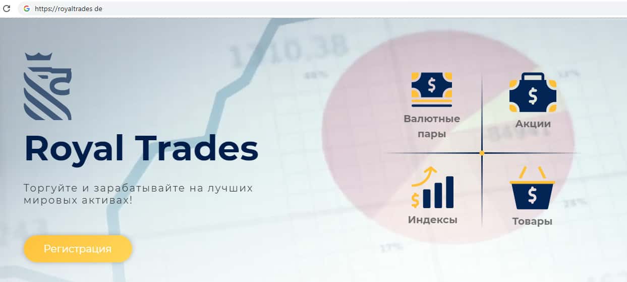 RoyalTrades De - типичная скам-организация, которая выдает себя за честного и надежного брокера. Контора Роял Трейдс разводит своих клиентов не только на торгах, но и на услугах доверительного управления. Не ведитесь на провокации и обещания жуликов мошеннической организации Роял Трейдс.