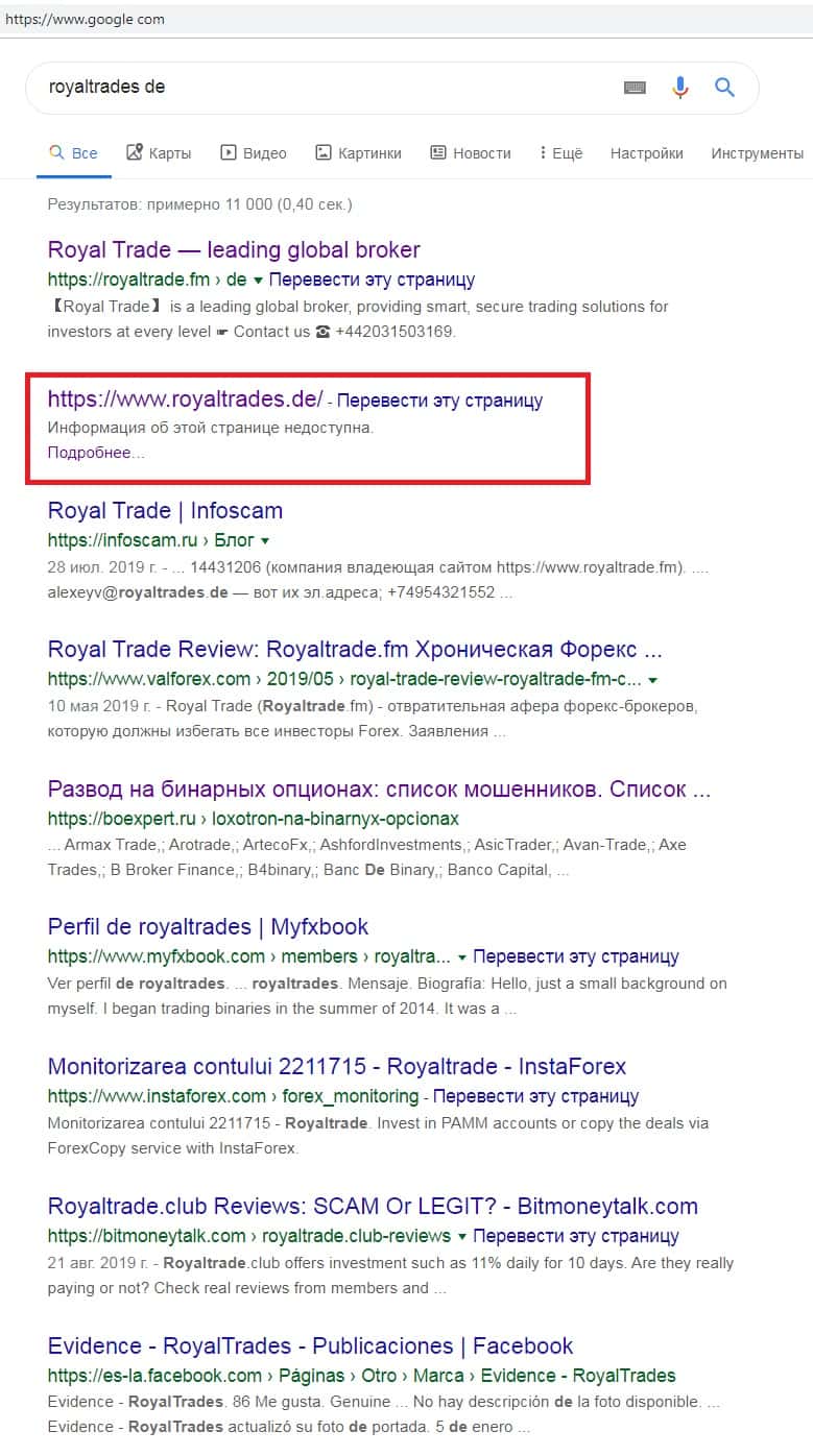 - Отсутствие отзывов о скам-конторе Роял Трейдс в глобальной сети-интернет