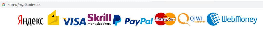Мошенники RoyalTrades De для перевода денежных средств предлагают множество вариантов от яндекс-кошелька до киви-кошелька, ну и конечно же банковские переводы. В случае не выплаты средств клиенту шуллера организации Роял Трейдс станут винить конечно же систему для перевода средств утверждая, что перевели деньги.