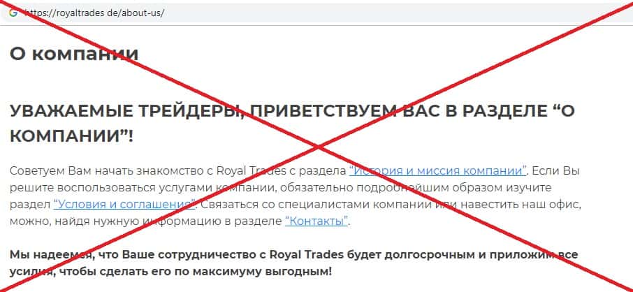 - Отсутствие руководства мошеннической конторы RoyalTrades De