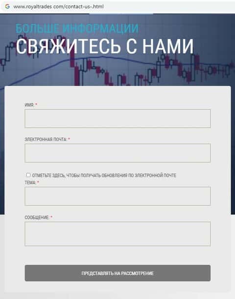 Мошенники Роял Трейдс ведут сбор данных о посетителях своего дырявого сайта, просят указать свой адрес электронной почты в качестве обратной связи.