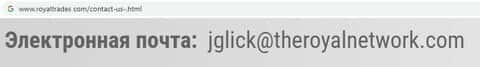 Шулера Роял Трейдс Ком на своем официальном онлайн-ресурсе указывают адрес электронной почты, а именно: