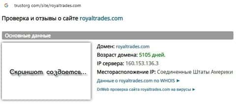 - Информация о возрасте домена шараги Роял Трейдс Ком