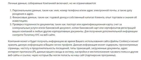 Далее в политике конфиденциальности шулеров s2trade следует информация о том, какие именно данные клиентов собирают аферисты С 2 Трейд, однако мошенники s2trade заранее предупреждают о том, что они не ограничиваются данным перечнем информации о клиентах.