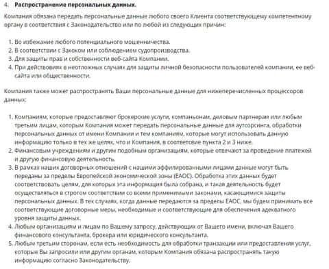 Далее у шулеров s2trade следует текст о распространении вашей информации, суть которого довольно размыта и толком не понятно, что могут сделать с вашей личной и персональной информацией мошенники С 2 Трейд, и будут ли они нести за это ответственность.