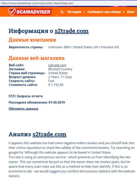 Руководители жуликов s2trade предпочитают анонимность