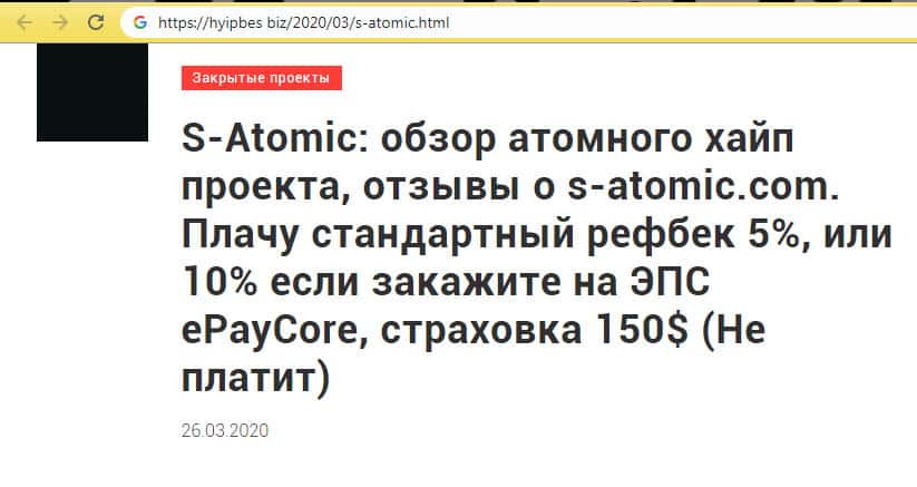 Удаляя остатки своей мошеннической деятельности С Атомик не подумали о том, что интернет это обширная сеть в которой хранится вся информация попавшая хотя бы один раз в сеть. Таким образом на одном из сайтов занимающихся разоблачение аферистов есть статья посвящённая подвальной кухни S-Atomic, со всеми вытекающими.