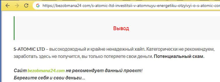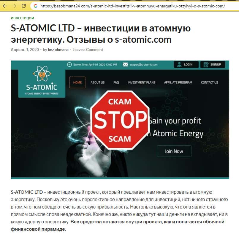 Но к несчастью самих мошенников S-Atomic информация о их деятельности в интернете осталась и доступна другим пользователям. В данной статье описывается вся характеристика мошенников С Атомик в полном её объёме. Так как данный сайт предоставляет полную и качественную оценку жуликам в виде лохотрона S-Atomic.