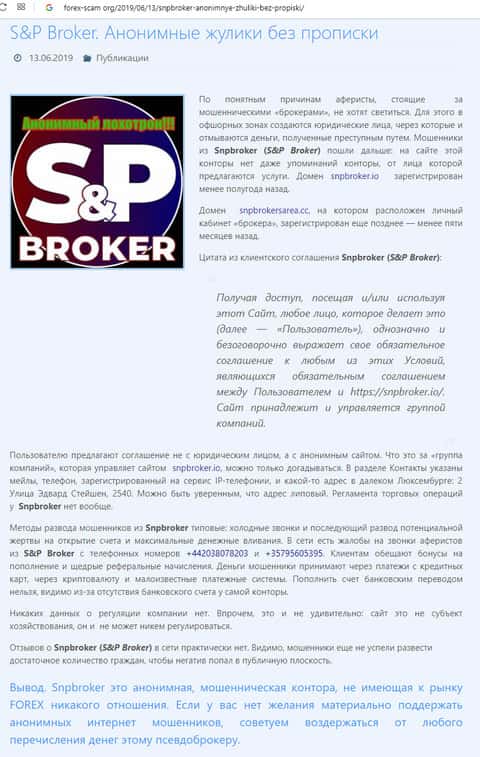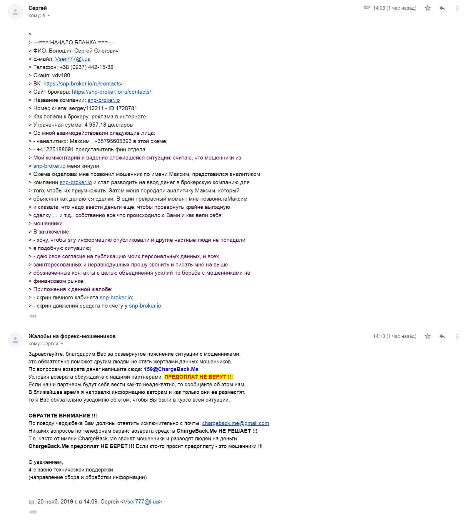 - Подробная жалоба на SNP Broker - клиент потерял около 5000$