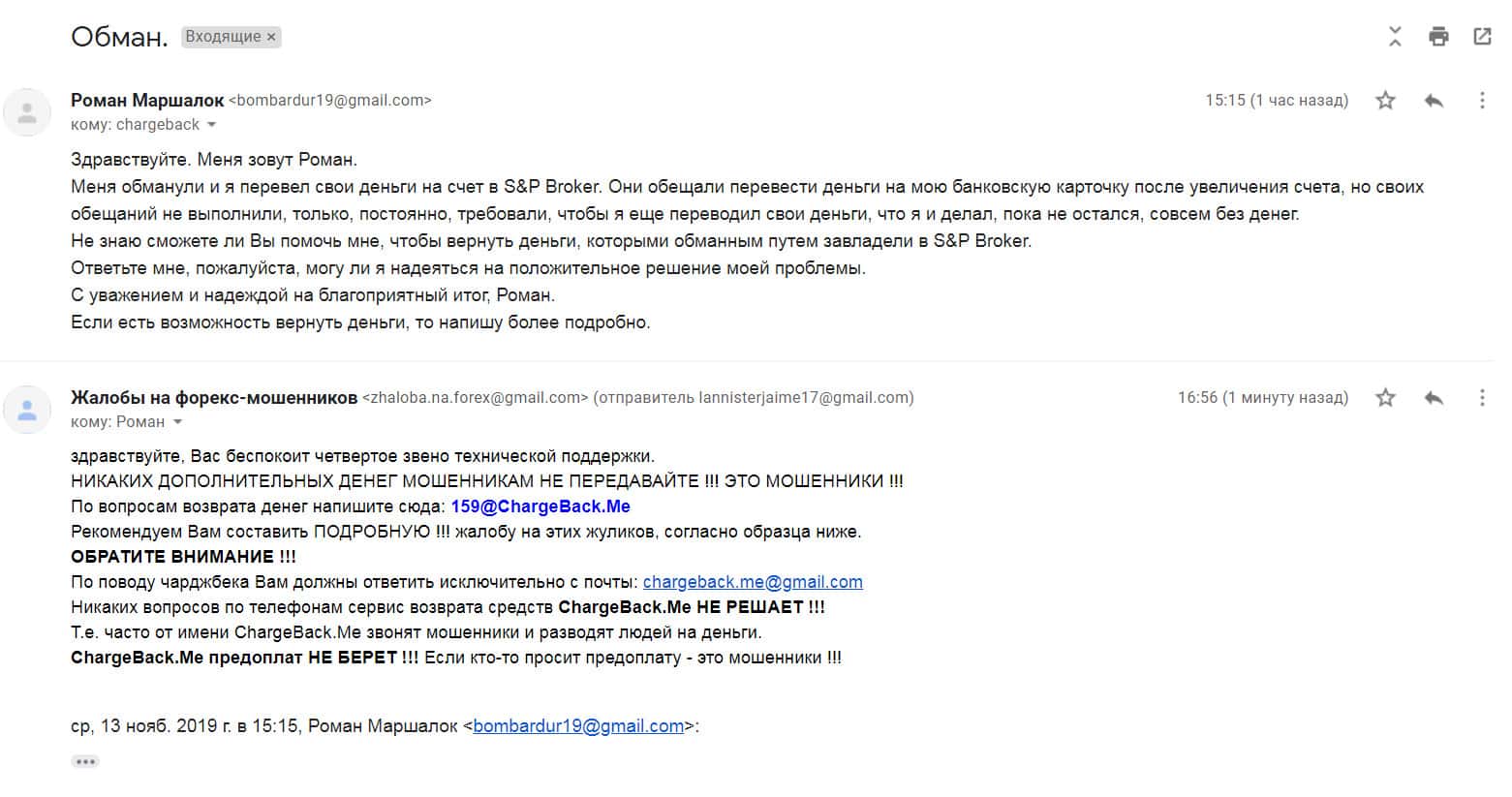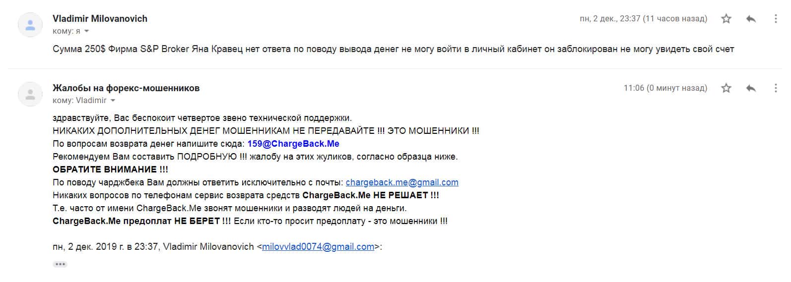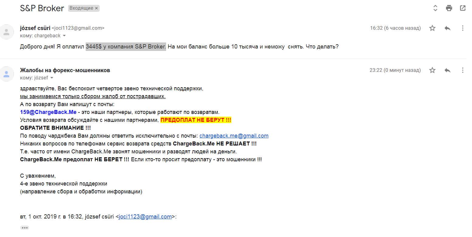 - Жалоба на жульническую контору S&P Broker