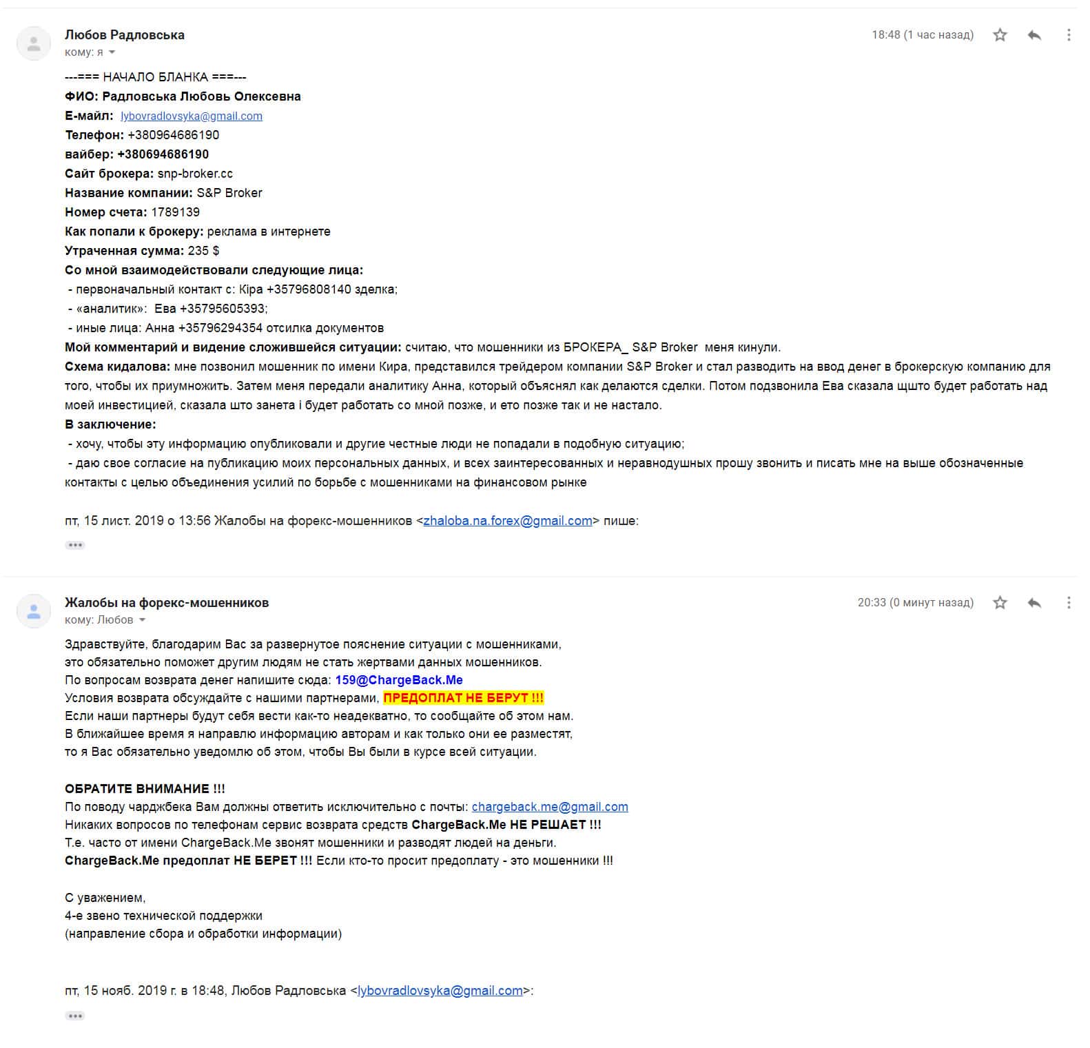 - Подробная жалоба на мошенническую организацию S&P Broker