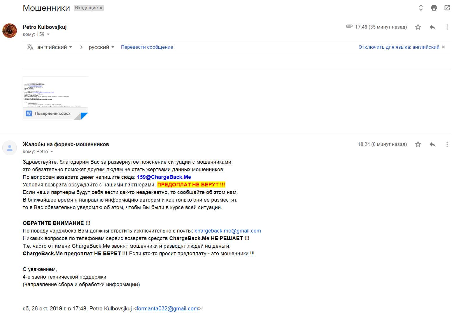 Далее представлено письмо, в котором жертва аферистов СНП Брокер предоставил возможность ознакомиться в подробностях со схемой кидалова.