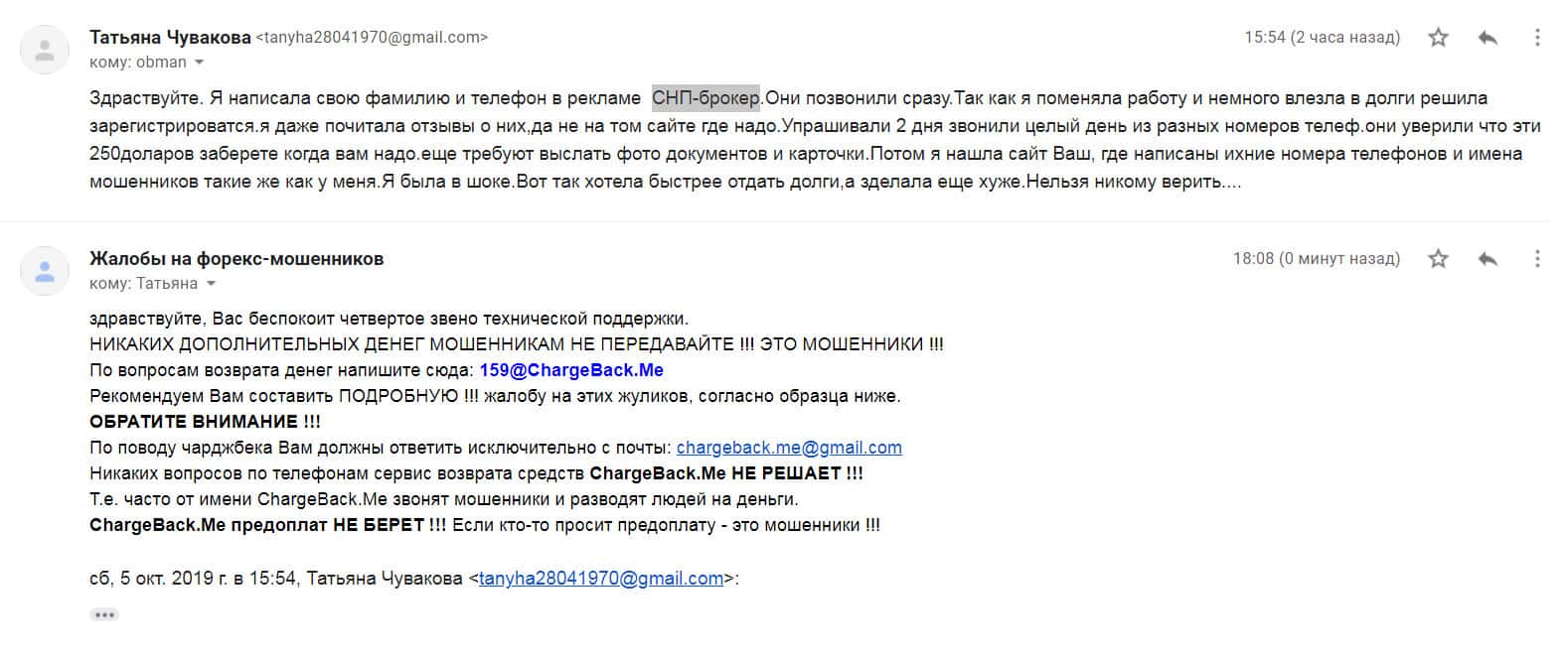 - Очередной обманутый клиент СНП Брокер написал жалобу