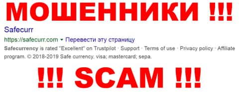 Сейф Карренси - очередные мошенники сети интернет, которые занимаются довольно обычным разводом наивных пользователей сети интернет под предлогом обменника, и даже, несмотря на свой годовалый возраст, аферисты Safe Currency умудряются легко разводить клиентуру. В связи с этим иметь дело и сотрудничать с лохотроном Сейф Карренси определенно не рекомендуем !!!