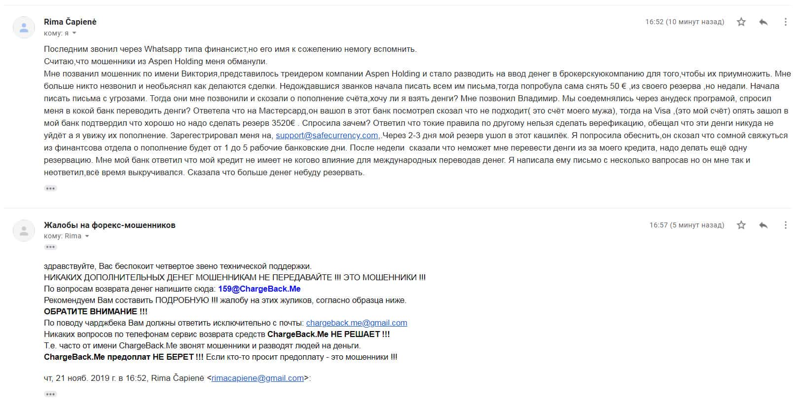 - Safe Currency и Аспен Холдин организовали совместный развод - клиент потерял более 3000 евро