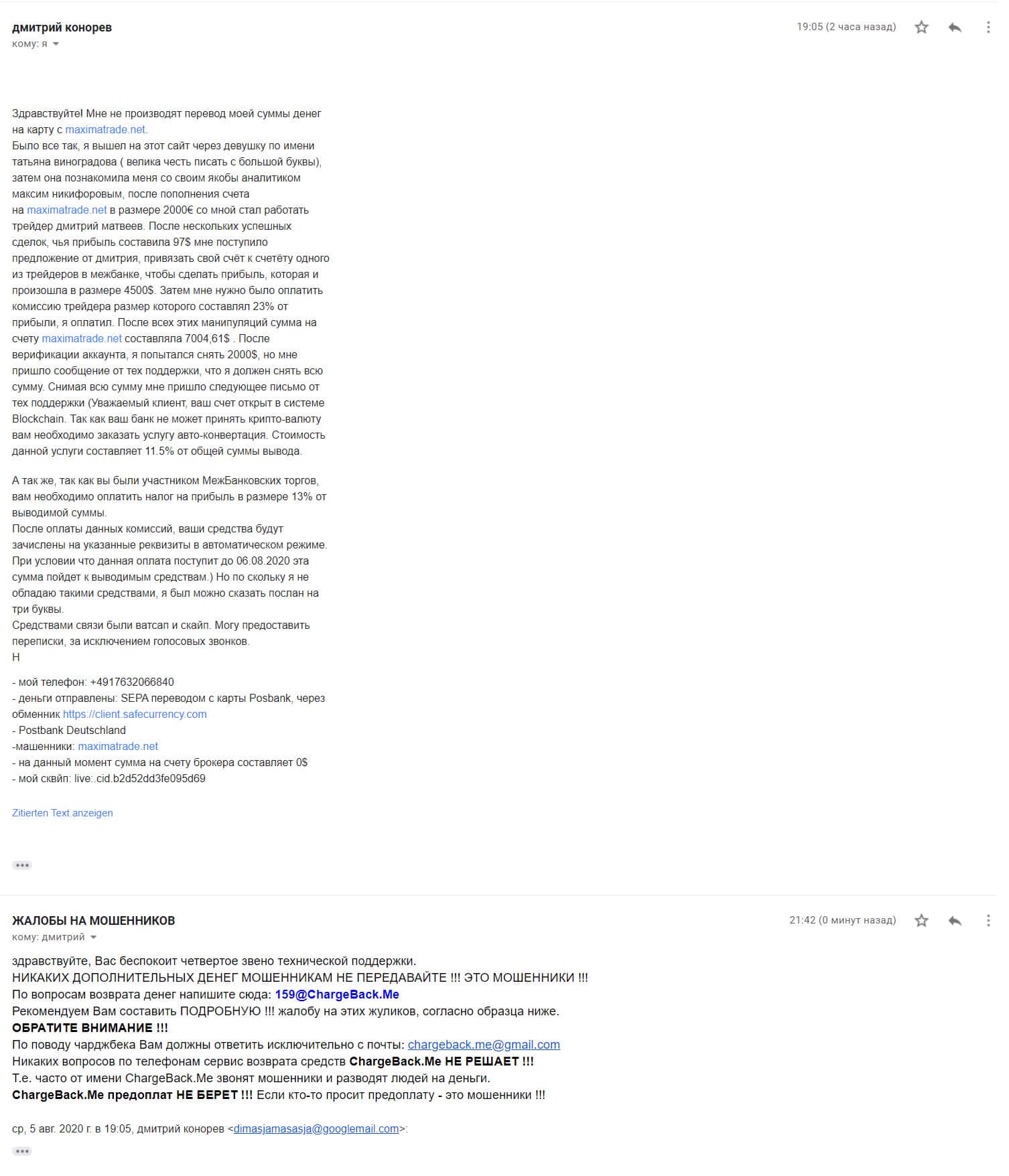 - Мошенники Safe Currency и MaximaTrade Net кинули клиента на 2000 евро